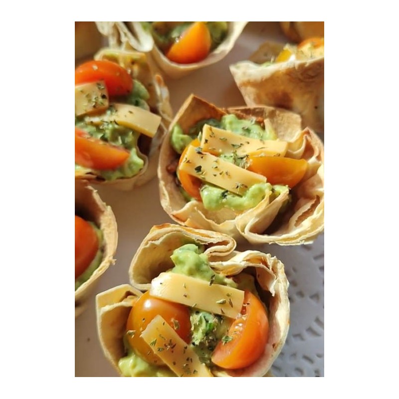La canastita mexicana posee guacamole, carne semipicante, crema, tomate, cheddar, perejil