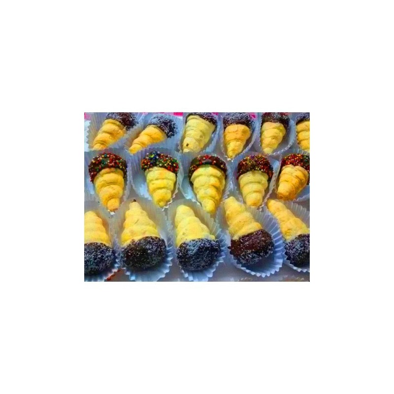 Deliciosos cachitos bañados en chocolate, rellenos con manjar y crema.