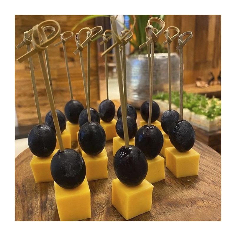 Tenemos para sus eventos tabla de 20 quesitos en un pincho con diversos ingredientes para combinar, frutilla, aceituna, jamon serrano, salame, peperoni, pepinillo, cherry.